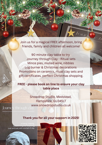 Mince pies, mulled wine, ritual clay table to enjoy, gifts and chat with friends.